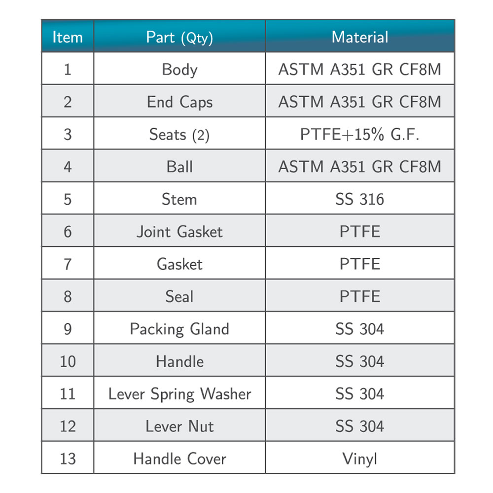 - Reinforces PTFE seat & seals