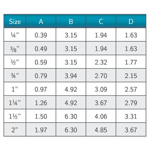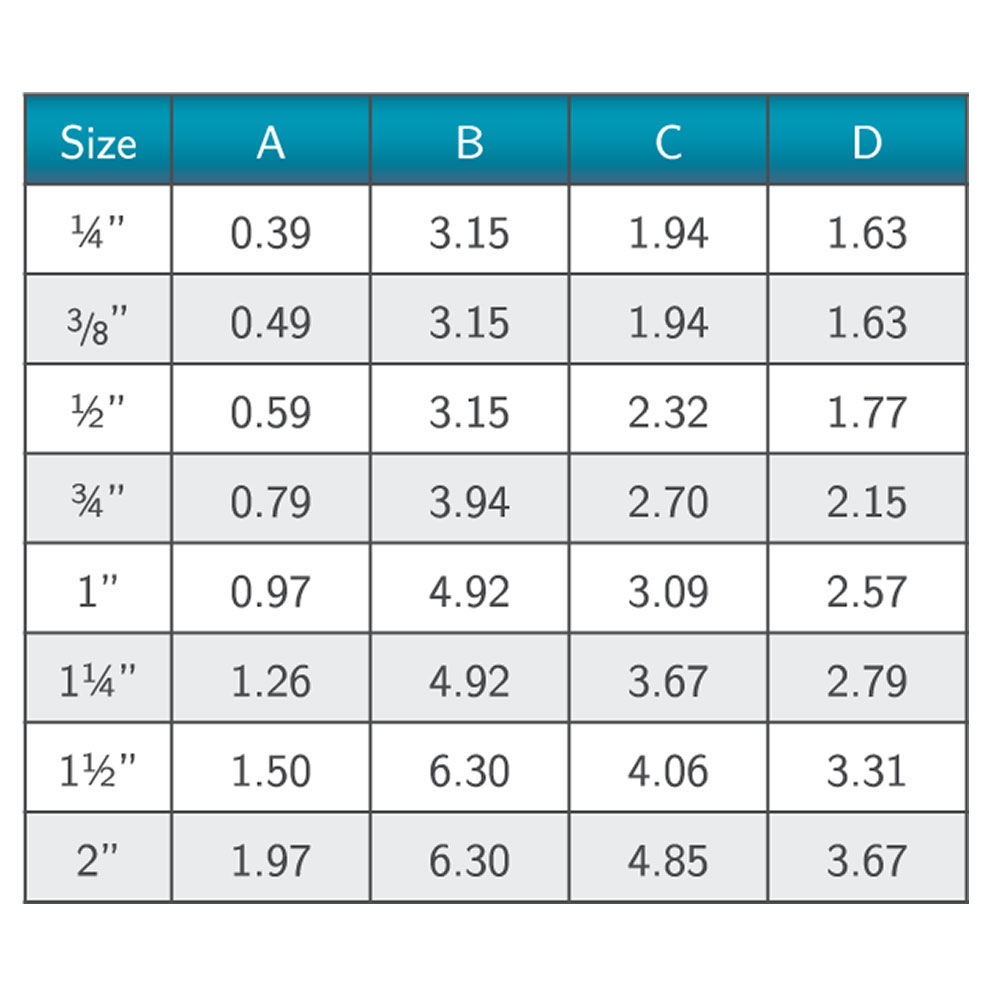 - Available in ¼”-2”