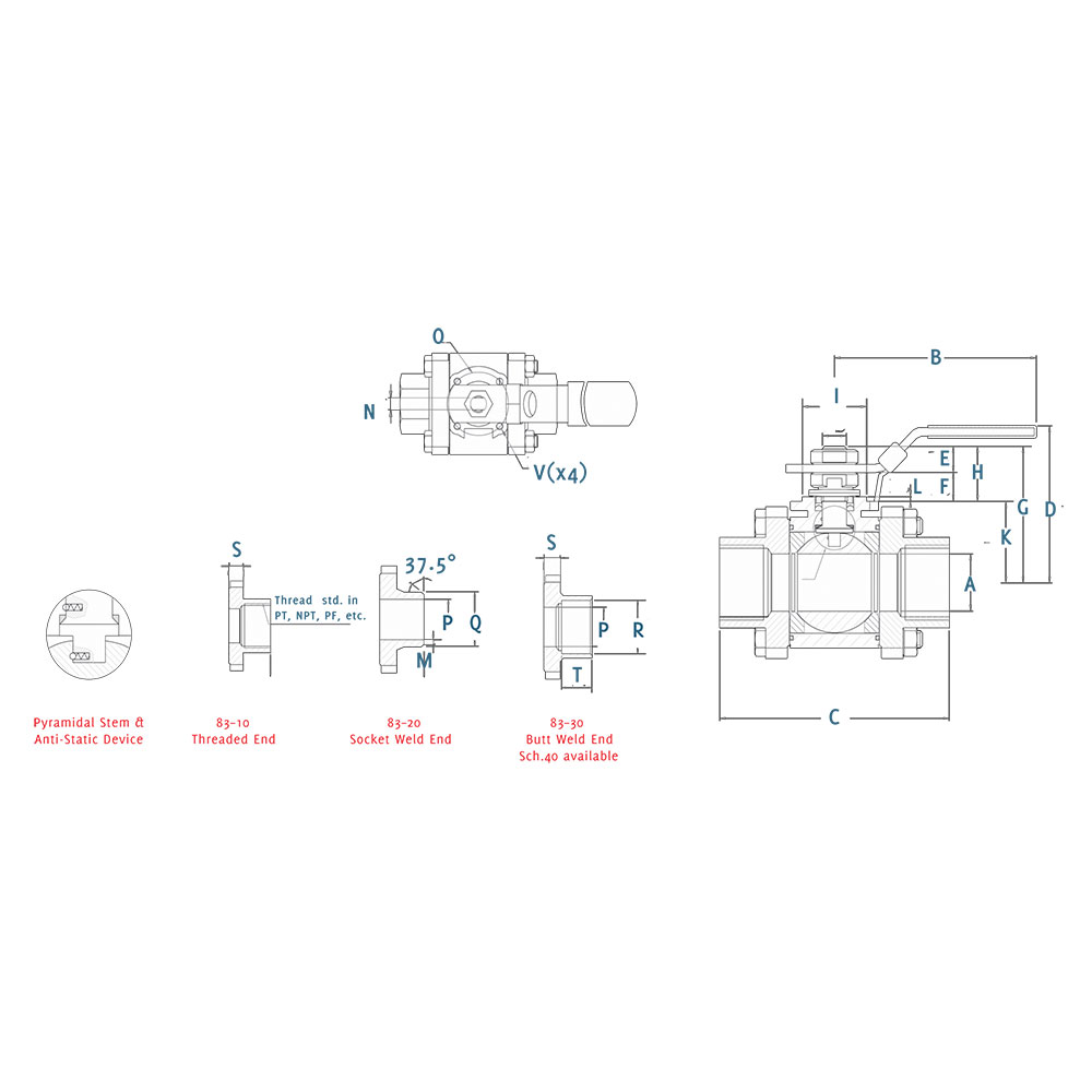 - Full port, anti-static device