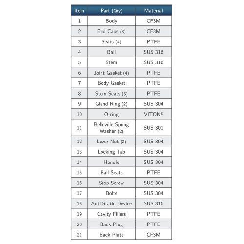 - L-Port or T-Port configuration; 4-way double LL ball available